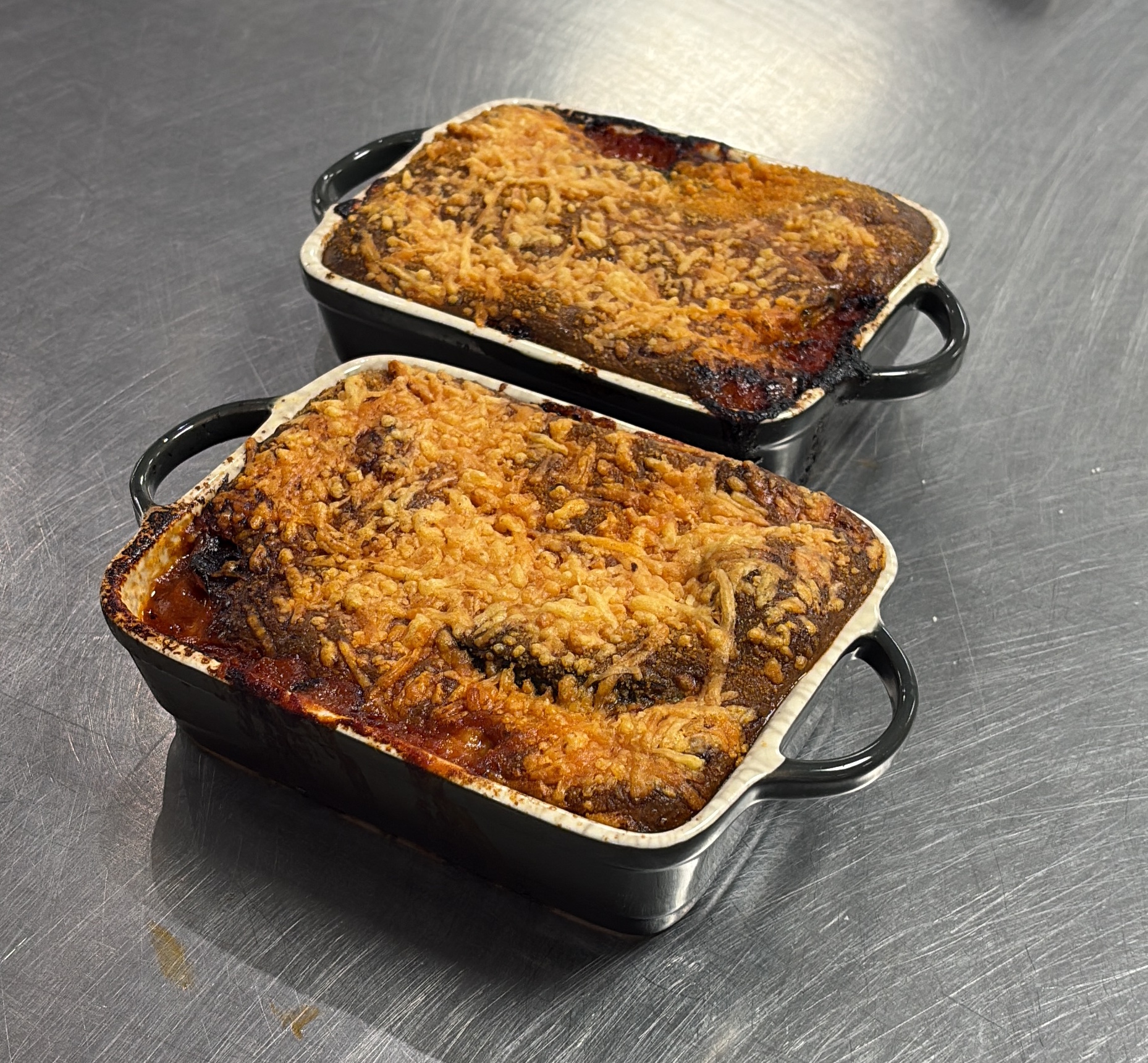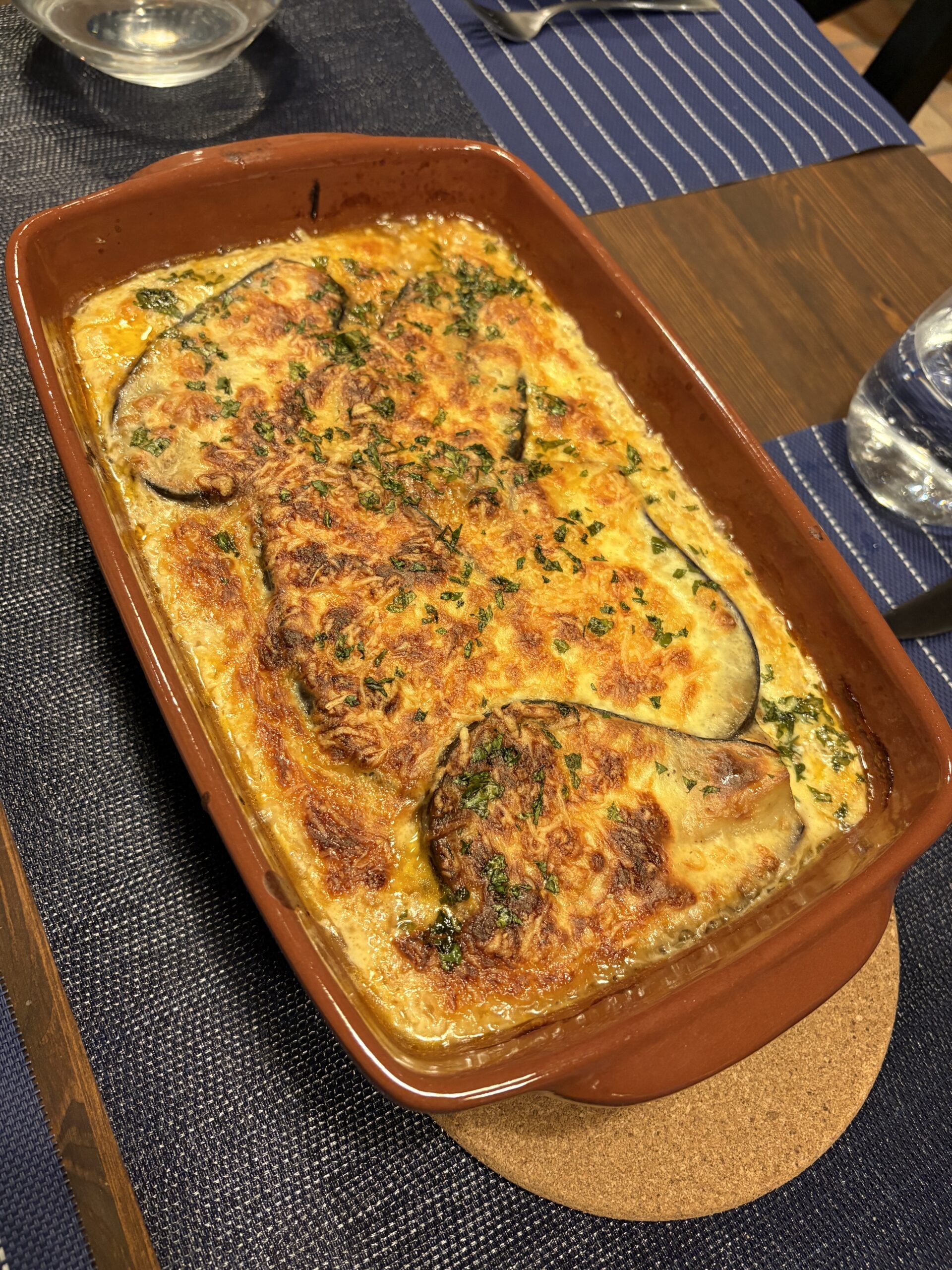 - Leg onder in een ovenschaal een derde van de aubergineplakjes.