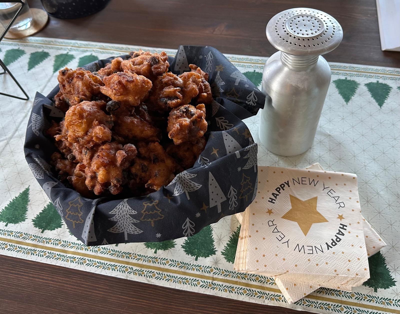 - Neem een volle eetlepel beslagmix, en schuif die met een tweede eetlepel eraf in het frituurvet