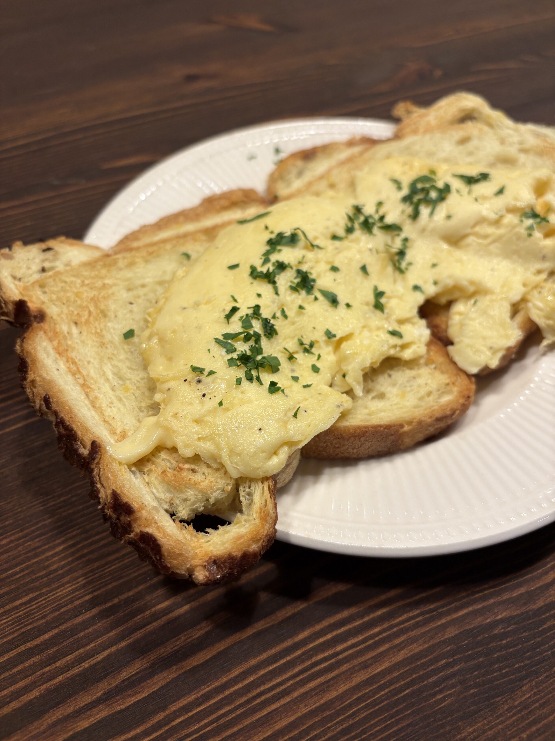 - Maak draaiende bewegingen met de pan zodat het ei in losse flarden begint te vormen
