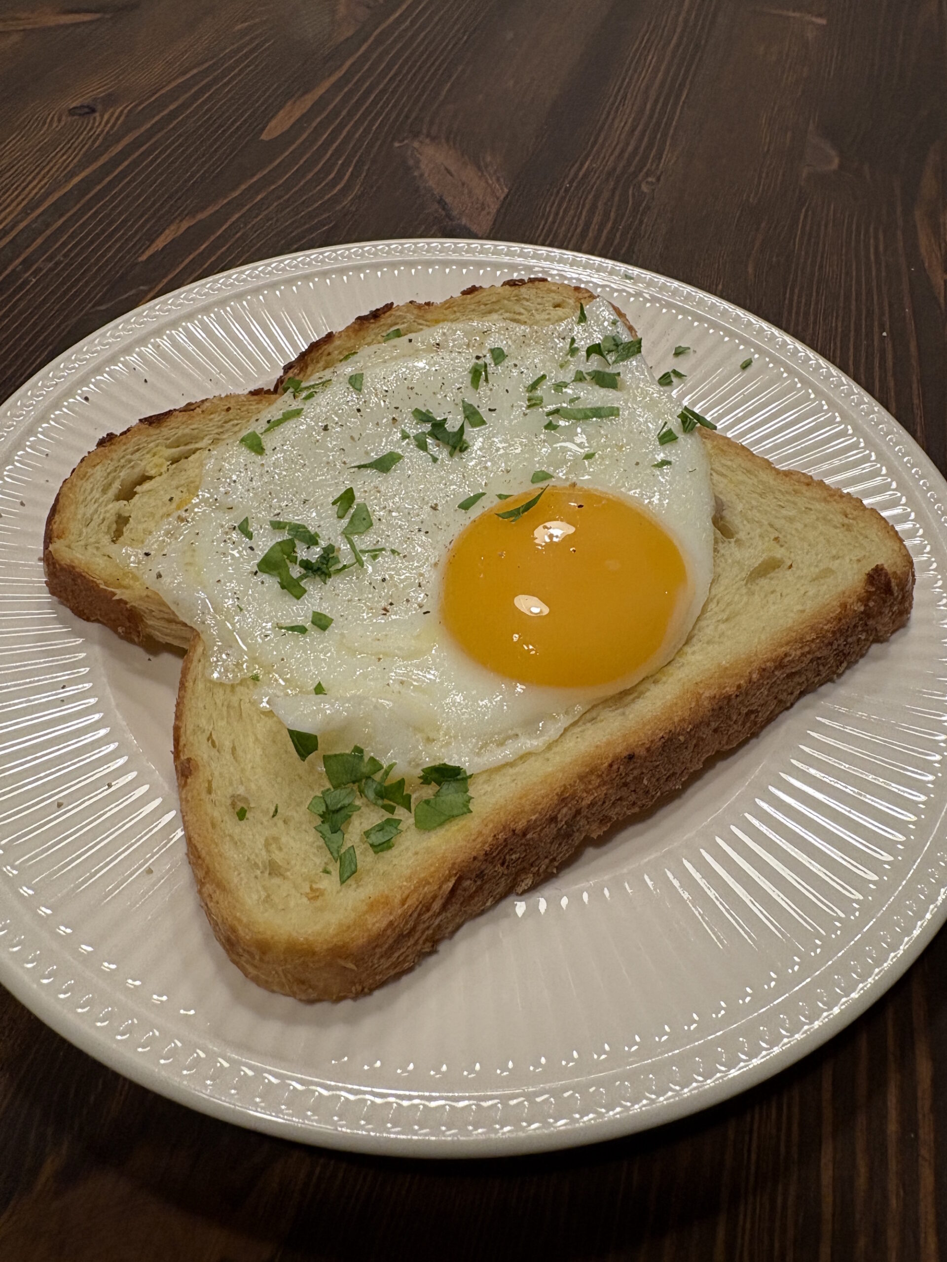• Als de boter gesmolten is maar nog niet schuimt voorzichtig het ei in pan plaatsen