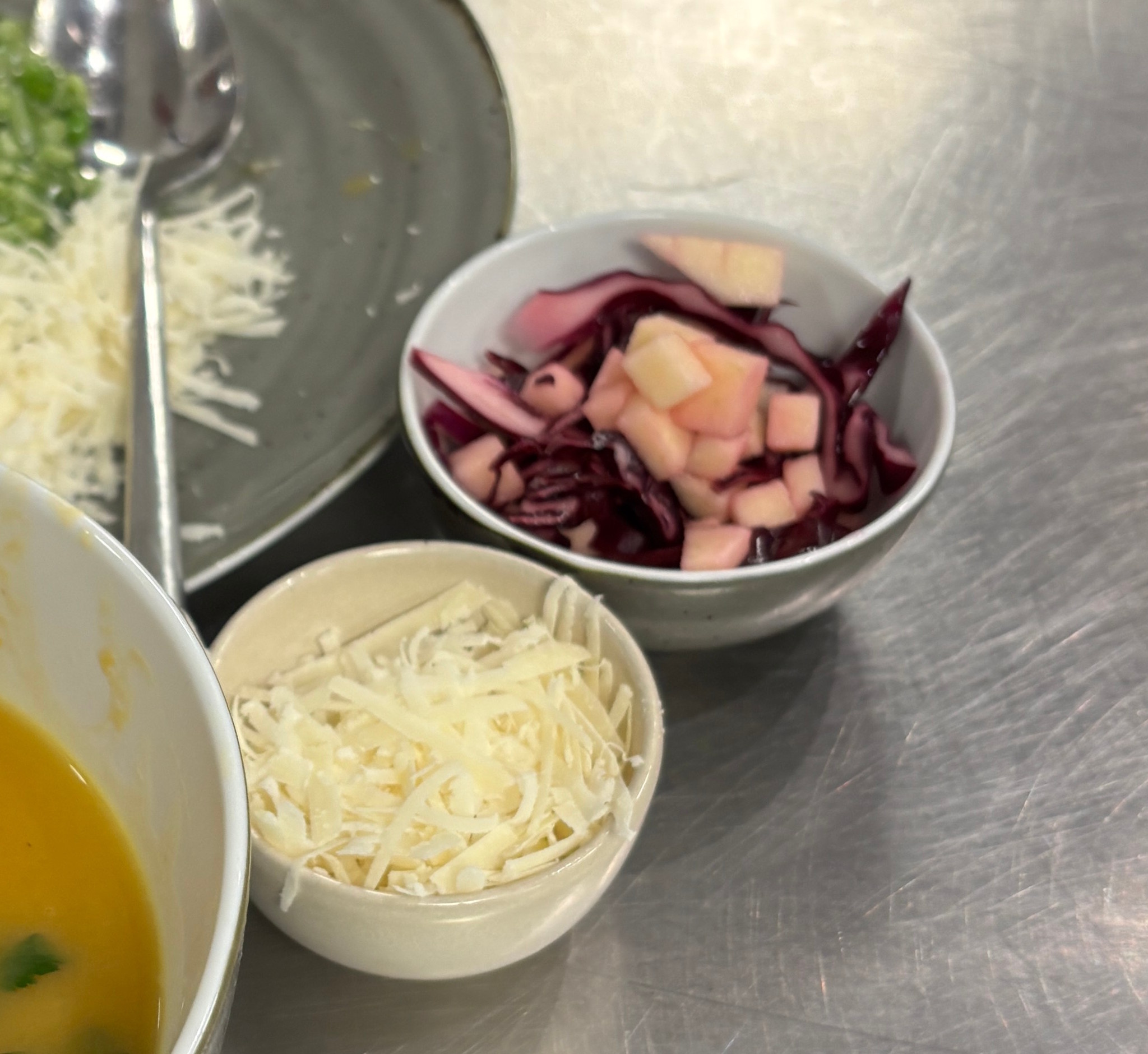 - Meng met de gemarineerde rode kool en breng op smaak.