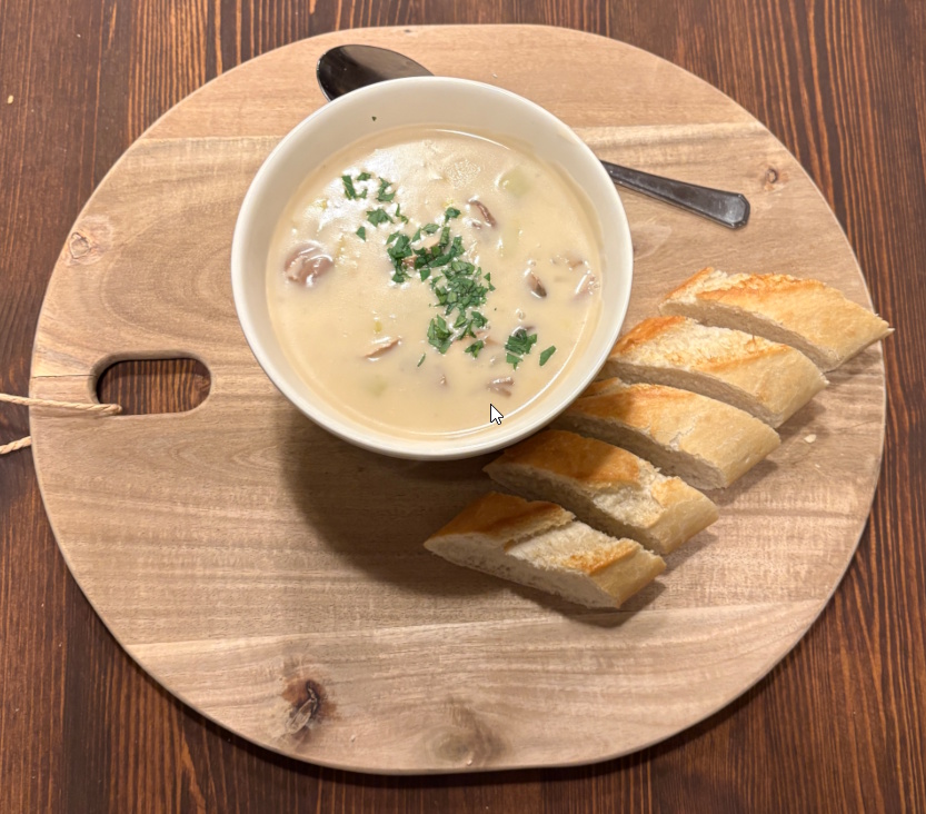 - bak de champignons en sjalotten kort in boter om laterer toe aan de gebonden soep.